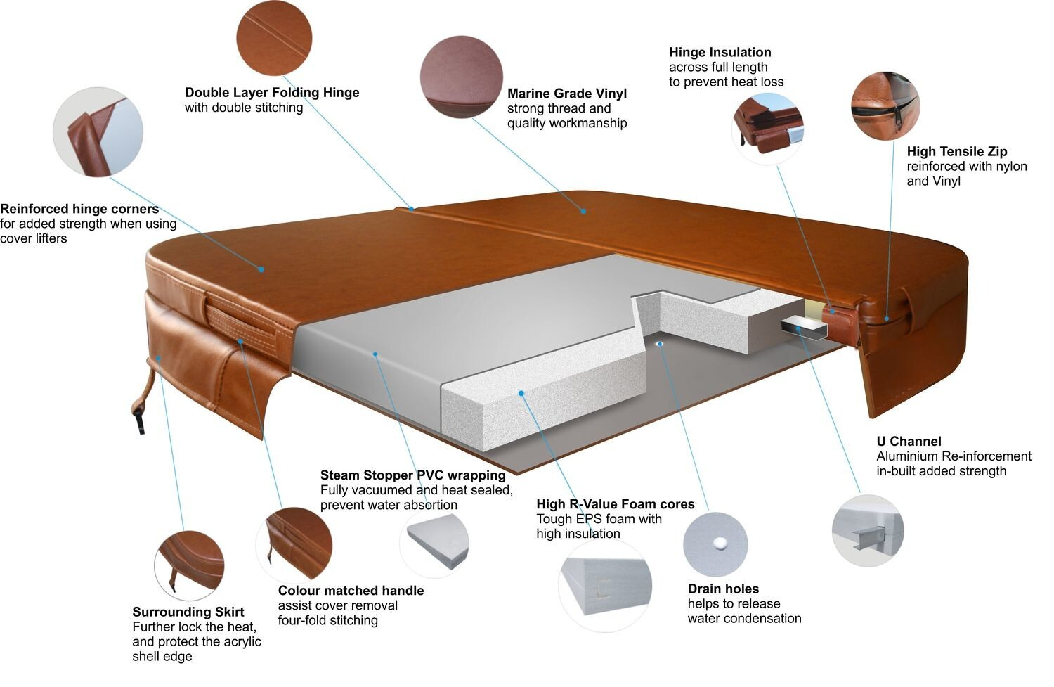After drying, carefully check whether the surface of the cover has scratches or damages, whether the sealing rubber strips are aged or detached, and whether the zippers work smoothly. If minor scratches are found, a small amount of vinyl repair agent can be applied; aging rubber strips or faulty zippers need to be replaced in a timely manner to prevent water from seeping into the internal foam, which would cause the cover to become heavier and reduce its thermal insulation effect.