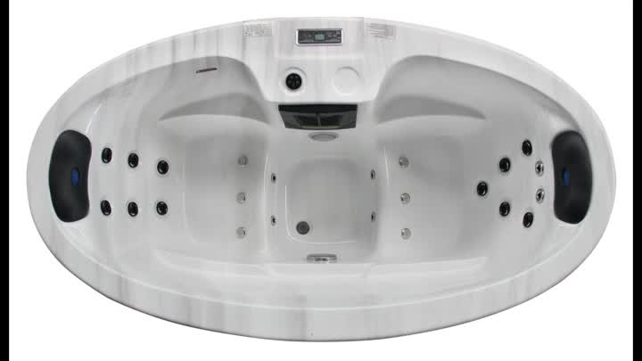 Experience the ultimate relaxation in our two-person oval hot tub.